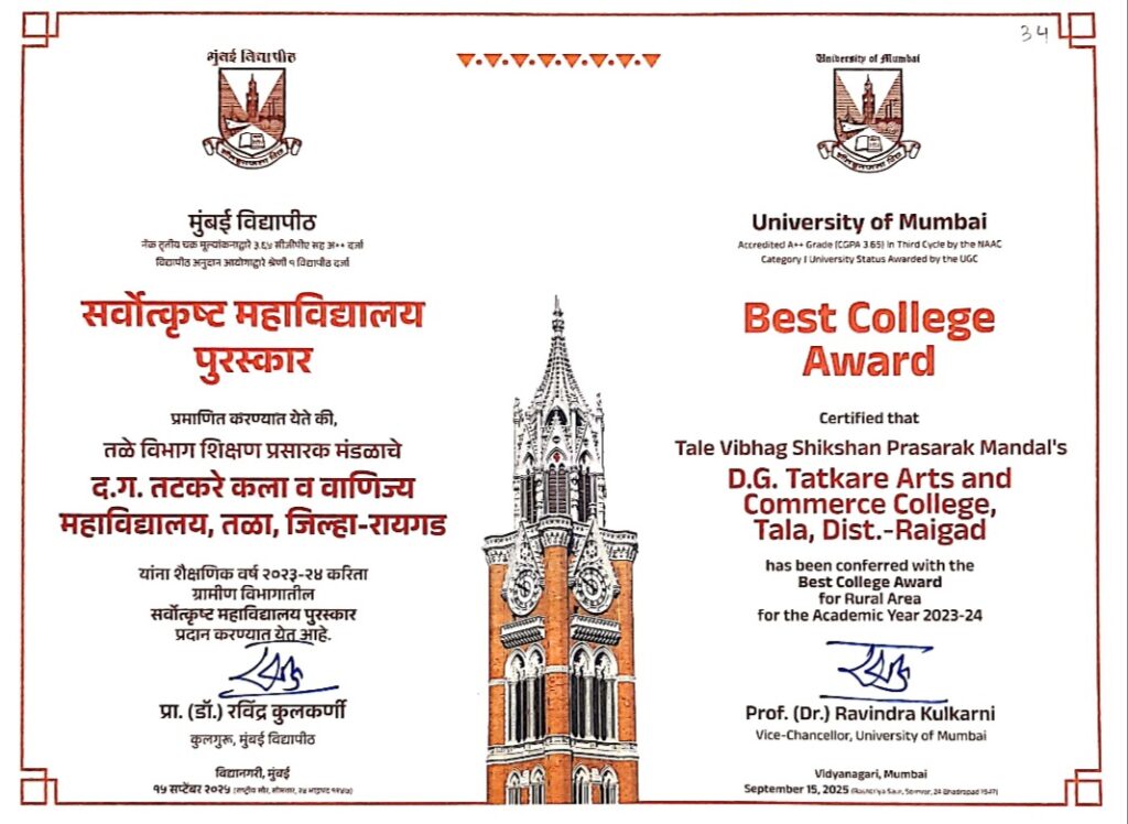 Tal. Tala, Dist - Raigad - 402111 02140-269575, 9273499354, dgtcollegetala1@yahoo.co.in
